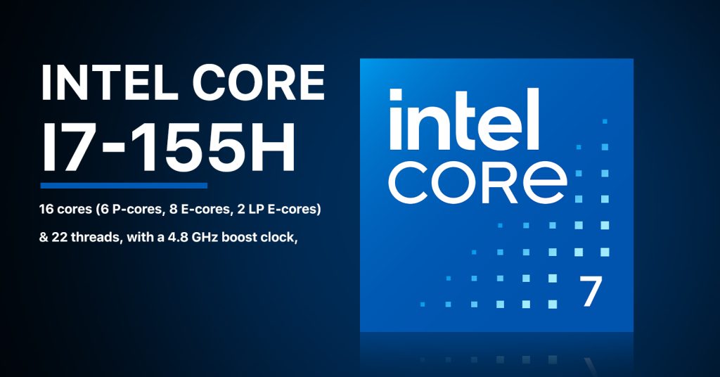 • CPU: Intel Core Ultra 7 155H (16 cores, 22 threads, to 4.8 GHz)